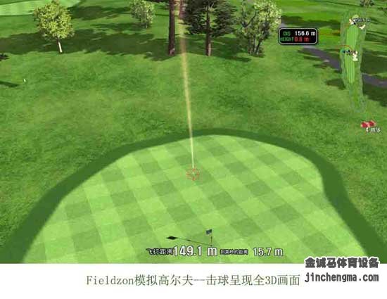 Fieldzon室内模拟高尔夫采用3D映像技术,航拍真实球场,含有四季变换的树木草丛,树枝摇曳,再现真实球场。体现了所有的树叶,旗帜,地形的3D立体感,真实体现了实际球场草地的感觉,按风吹树叶及旗帜自然的波动,体现了雨,雾等自然环境。